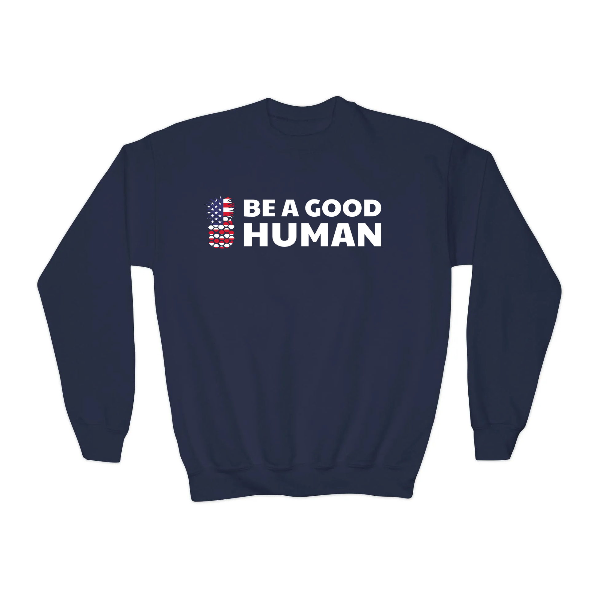 Be A Good Human American Flag YOUTH Crewneck